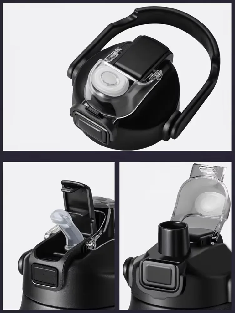 Enjoy effortless hydration with our insulated water bottle featuring a one-hand push-button lid. The straw pops out automatically, and is removable for versatile sipping or fast water flow. Equipped with a safety lock and dust-proof cap, this lid ensures 100% leak-proof, hygienic daily use.