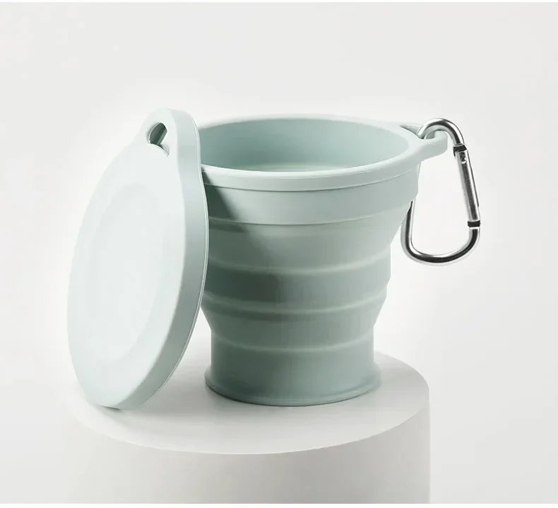 Crafted from flexible and durable silicone material (noting the plastic category for specifications), this cup is designed to fully collapse when not in use, saving valuable space in your bag. It features a sturdy rubber handle and a convenient hanging hole, making it easy to attach to a backpack or loop for hands-free carrying.
