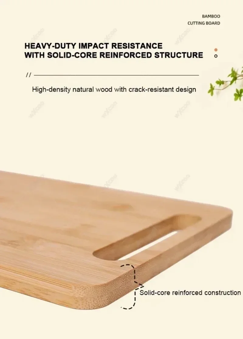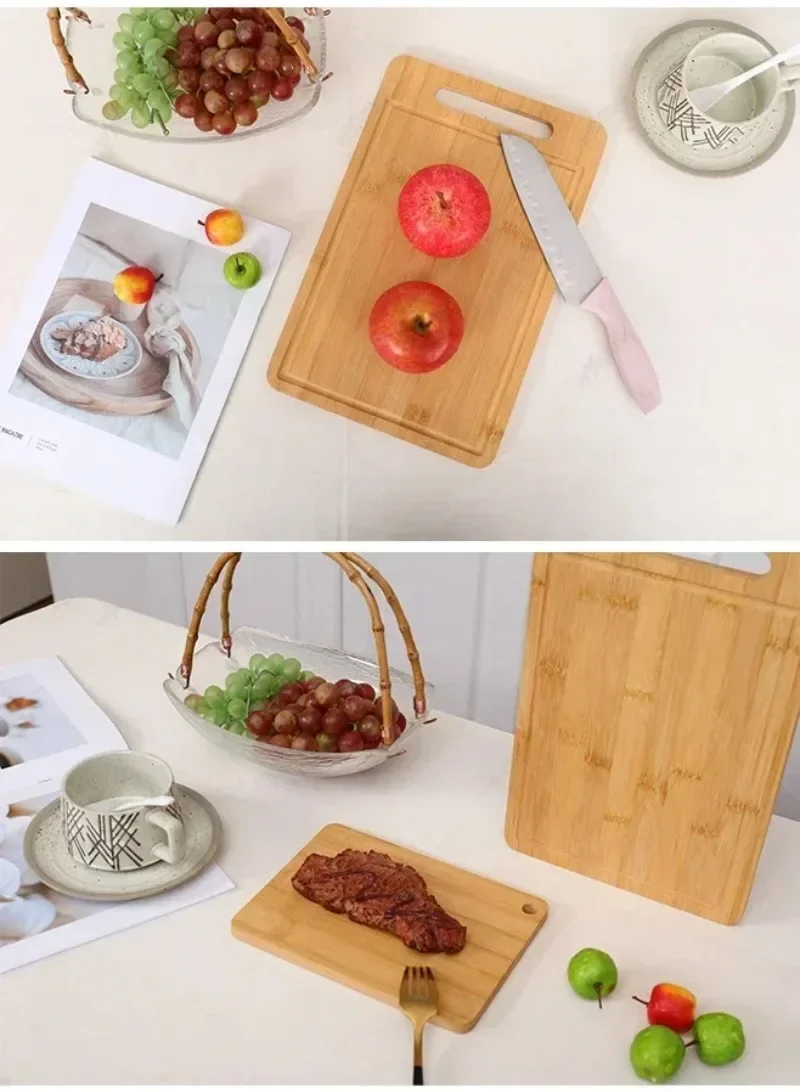 Natural Bamboo Side: Perfect for preparing fruits, vegetables, bread, and other items where a softer, knife-friendly surface is preferred.