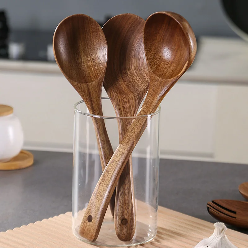 This long natural wood cooking spoon is designed for smooth, non-stick performance. Its sturdy, heat-resistant build makes it ideal for stirring, serving, and everyday meal prep. A comfortable handle and polished finish bring a warm, timeless touch to any kitchen.