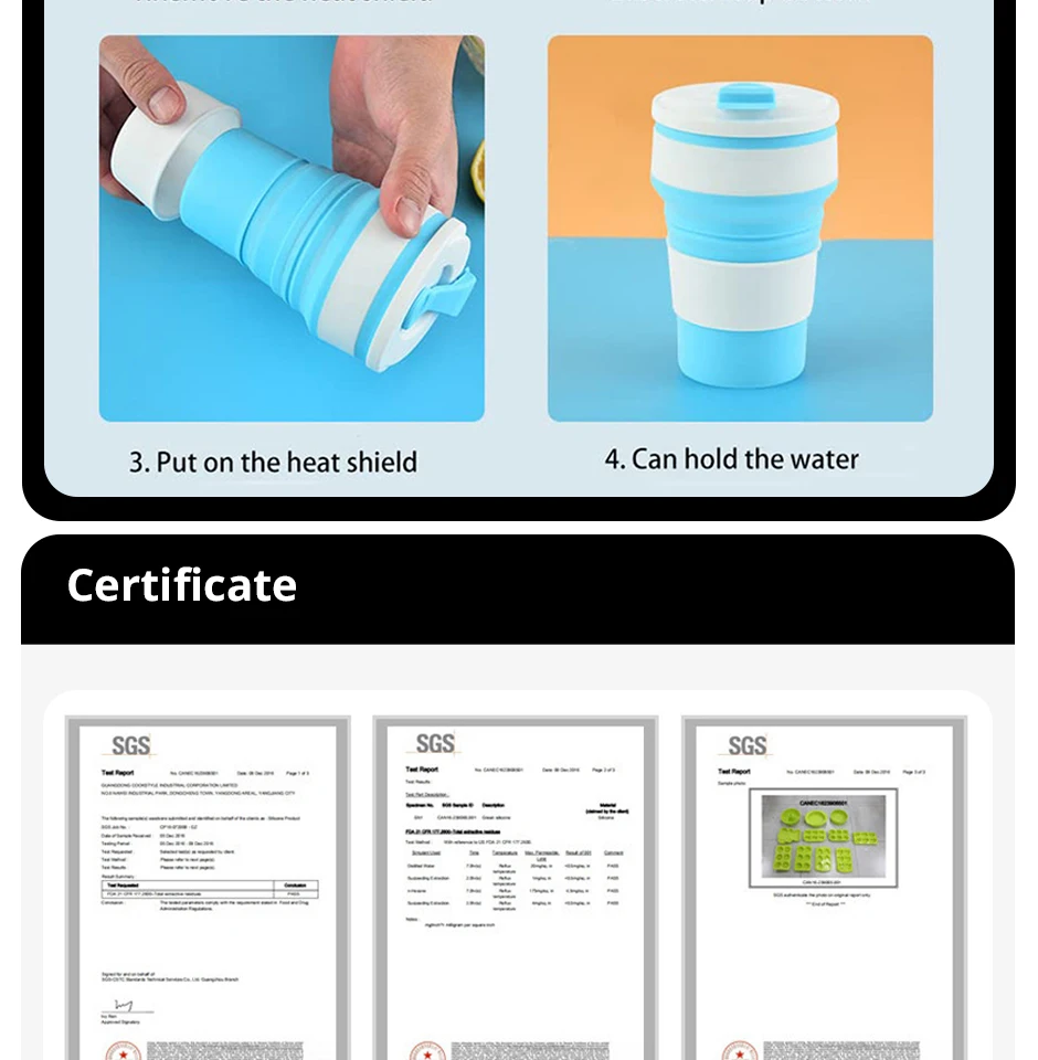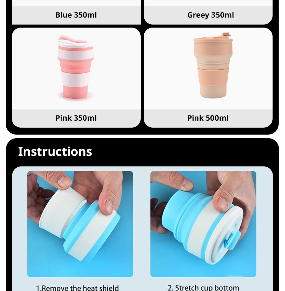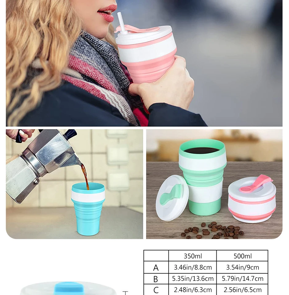These reusable silicone travel cups are designed for portability, durability, and eco-friendly use.