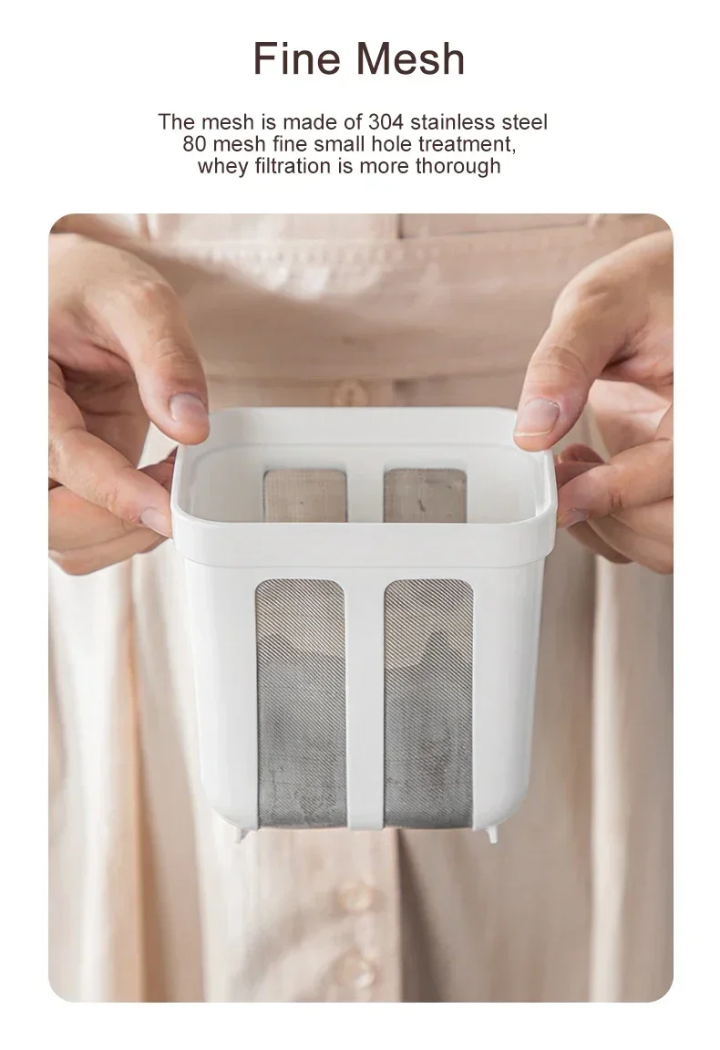 Effortlessly transform ordinary yogurt into thick, creamy Greek yogurt with this professional-grade Yogurt Filter and Strainer. Constructed from durable, food-safe 304 Stainless Steel and high-quality AS+PET materials, this tool is designed for efficient whey separation and moisture removal, doubling as a cheese moisture separator. It features a substantial 1100ml total tank capacity (500ml effective filtration capacity) and is an Eco-Friendly, stocked addition to your kitchen accessories.