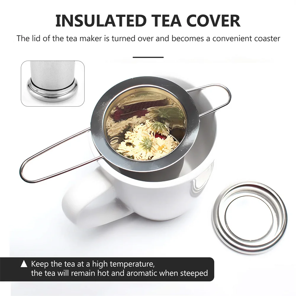 The fine mesh design ensures even the smallest tea leaves, such as rooibos, green, or herbal teas, are contained while allowing water to flow freely for optimal flavor extraction. Equipped with a convenient handle, the infuser rests securely on most cups, mugs, or teapots, preventing spills or floating.