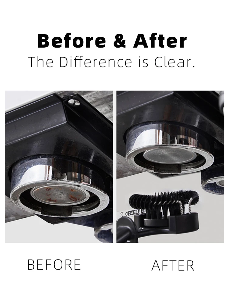 - Function: "360° dual-design brush head," "thoroughly clean every corner of the group head and gasket."
