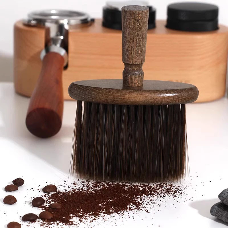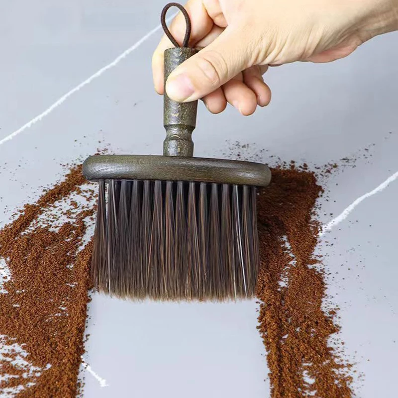 An essential tool for precise coffee station cleanliness. This brush features a comfortable solid wood handle and soft, effective bristles designed specifically for dedusting coffee powder. Ideal for sweeping grounds from espresso portafilters, coffee grinders, and kitchen countertops, ensuring a tidy workspace and preventing cross-contamination for better extraction.